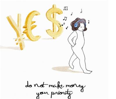 永远记住,金钱是解决问题的途径,不是目标。那么你心里想的是什么呢?你努力工作赚钱的目的是什么呢?总是在脑子中想一想你为什么工作,你工作的目的是什么。如果钱不是问题的话,你还会继续做你现在做的事情吗?如果你的回答明确的不是,那么你绝对有理由慢下来,思考一下。人生短暂,所以尝试着去找到你的激情,想出一种挣钱的方法并付诸实践。